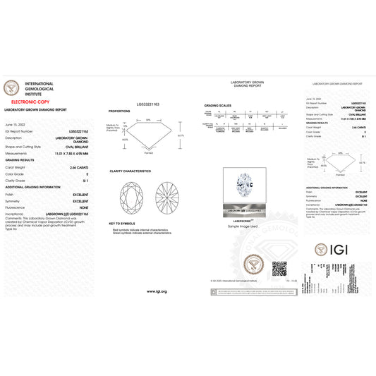2.66 Carat Oval Lab Grown Diamond Oval Cut - E Color - SI1 Clarity -IGI Certified