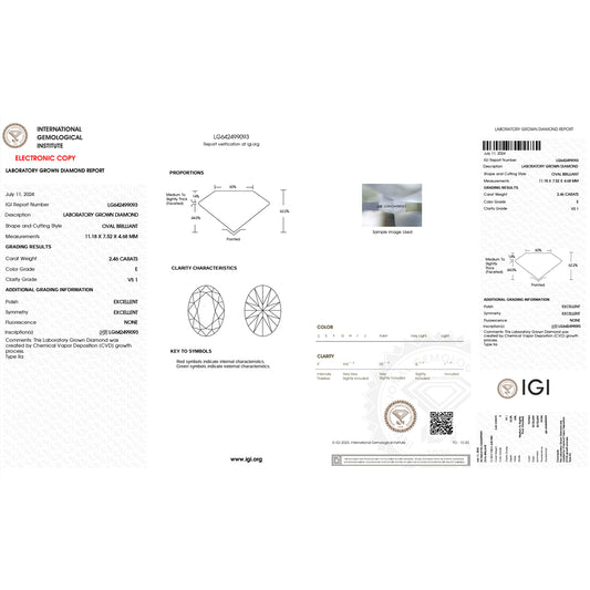 2.46 Carat Oval Lab Grown Diamond Oval Cut - E Color - VS1 Clarity -IGI Certified