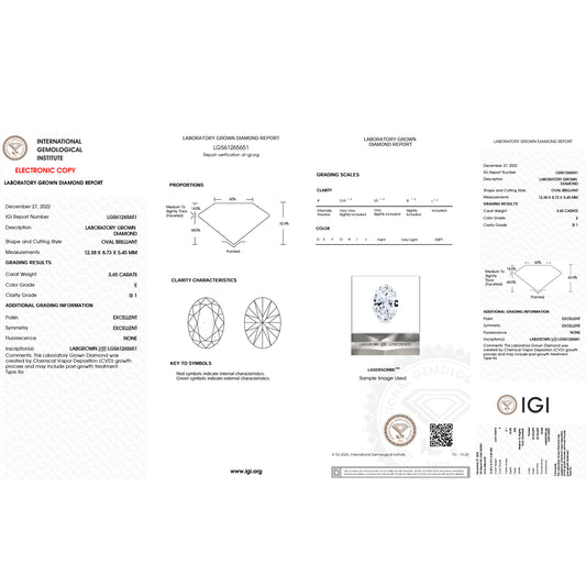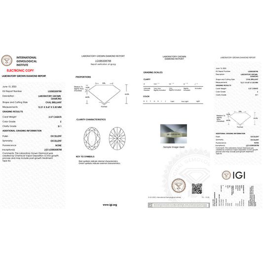3.37 Carat Oval Lab Grown Diamond Oval Cut - E Color - SI1 Clarity -IGI Certified