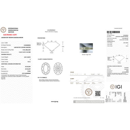 4.0 Carat Oval Lab Grown Diamond Oval Cut - E Color - VVS2 Clarity -IGI Certified