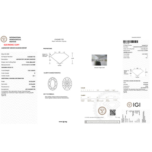 3.0 Carat Oval Lab Grown Diamond Oval Cut - D Color - VS2 Clarity -IGI Certified