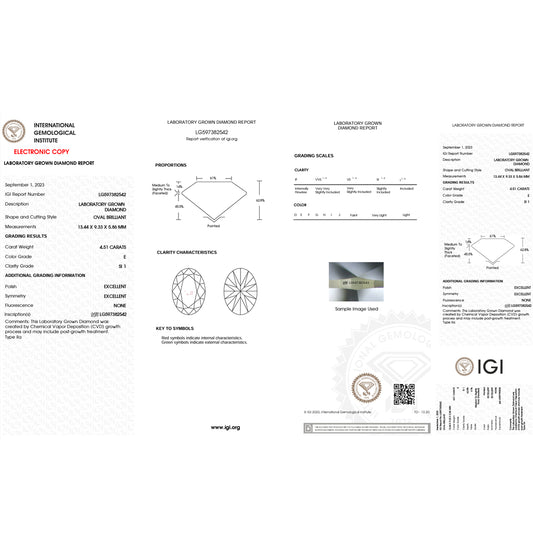 4.51 Carat Oval Lab Grown Diamond Oval Cut - E Color - SI1 Clarity -IGI Certified