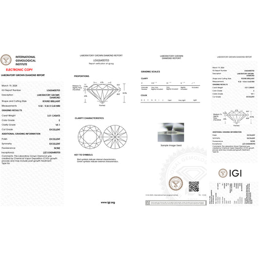 3.01 Carat Round Lab Grown Diamond Excellent Cut - E Color - VS1 Clarity -IGI Certified