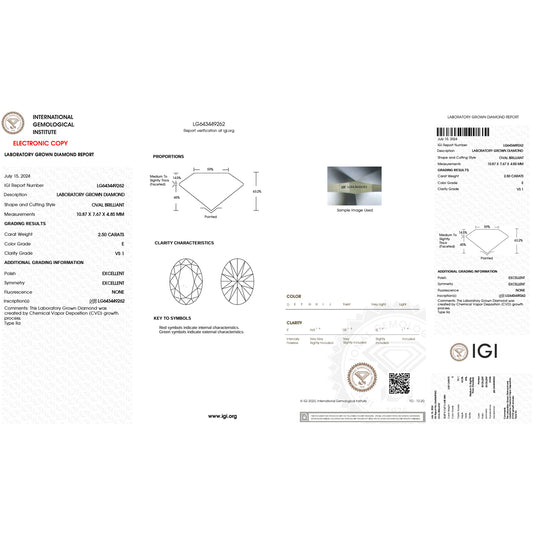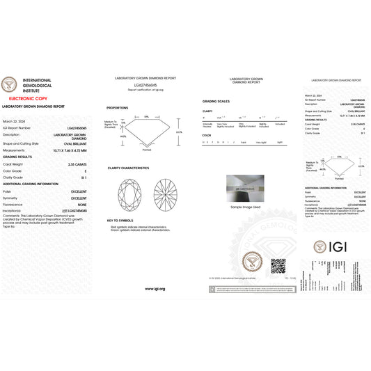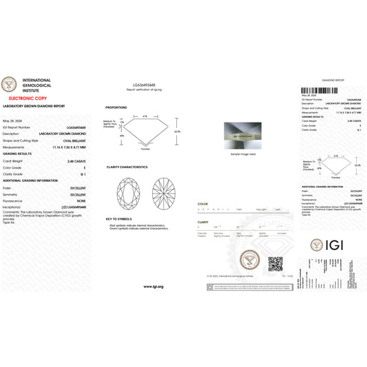 2.48Carat Oval Lab Grown Diamond Oval Cut - E Color - SI1 Clarity -IGI Certified