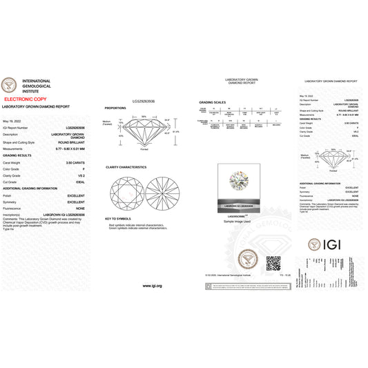 3.5 Carat Round Lab Grown Diamond Super Ideal Cut - F Color - VS2 Clarity -IGI Certified