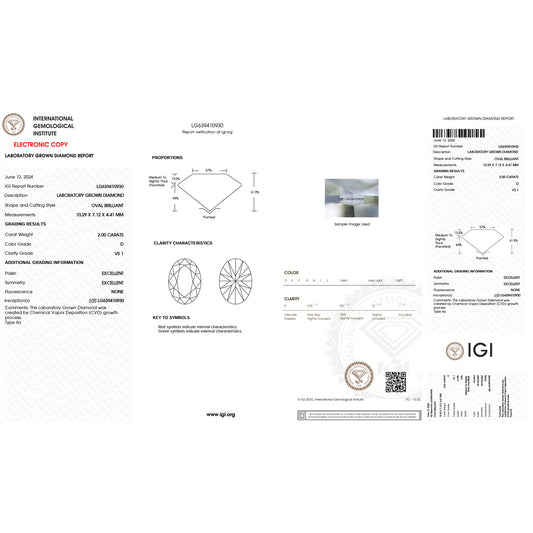 2.0 Carat Oval Lab Grown Diamond Oval Cut - D Color - VS2 Clarity -IGI Certified