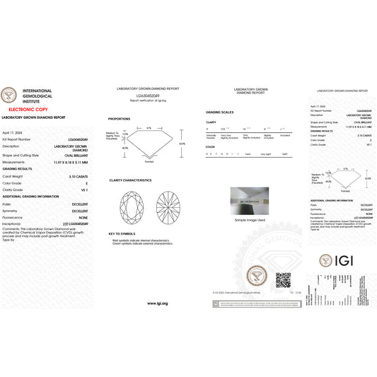 3.1 Carat Oval Lab Grown Diamond Oval Cut - E Color - VS1 Clarity -IGI Certified