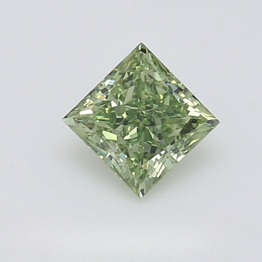 GIA Certified 1.02 Carat Enhanced Color Diamond - Fancy Intense Yellowish Green - Princess Cut