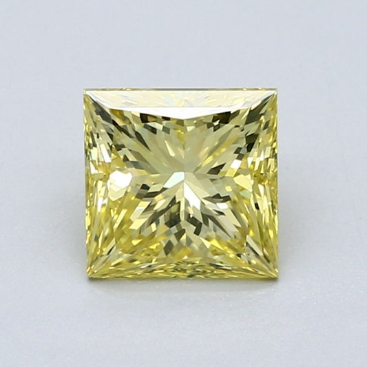 GIA Certified 1.01 Carat Enhanced Color Diamond - Fancy Vivid Yellow - Princess Cut