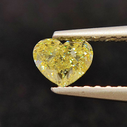 GIA Certified 1.01 Carat Enhanced Color Diamond - Fancy Intense Yellow - Heart Shape