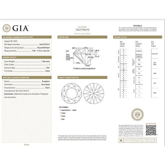 GIA Certified 1.50 Carat Round Diamond Good Cut - I Color - VS2 Clarity