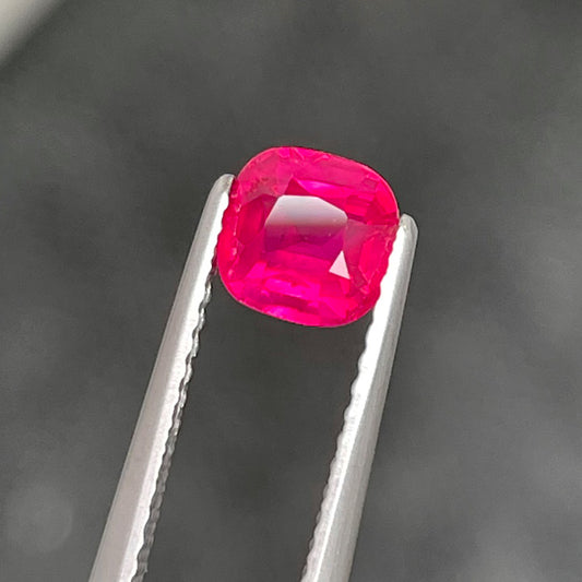 AIGS Certified Unheated Ruby Cushion Cut Gemstone - 1.06 Carats - Reddish Pink - 5.67 x 5.6 mm