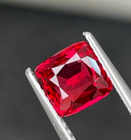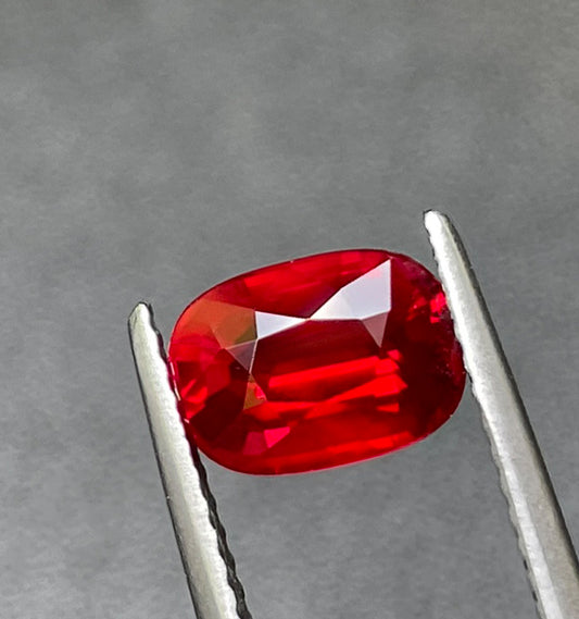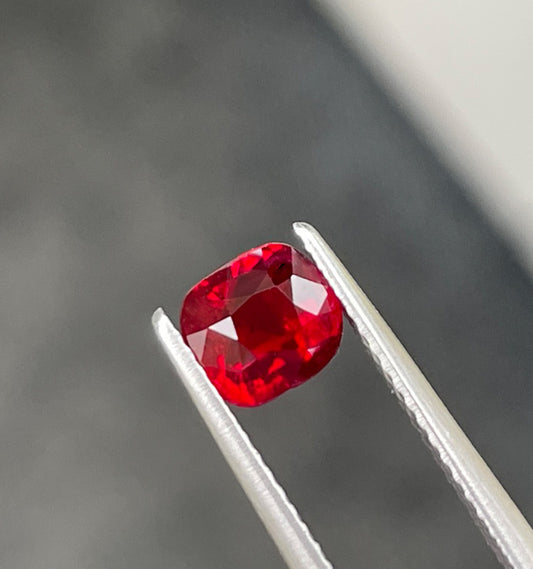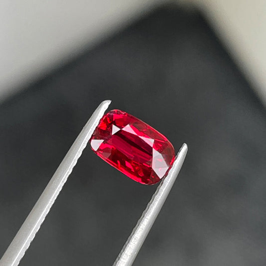 GRS Certified Unheated Ruby - Cushion Cut - Gorgeous Open Vivid Red - 1.53 carats - 6.18 x 5.67mm