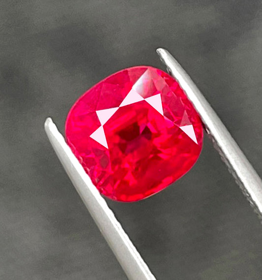 GUILD Certified Unheated Vivid Purplsh Red Ruby - Cushion Cut - 1.52 Carats - 6.48 x 5.70 mm