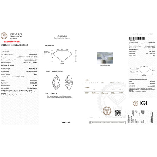 Lab Marquise Diamonds - Fancy Vivid Blue - Lab Grown Diamond 4.05ct