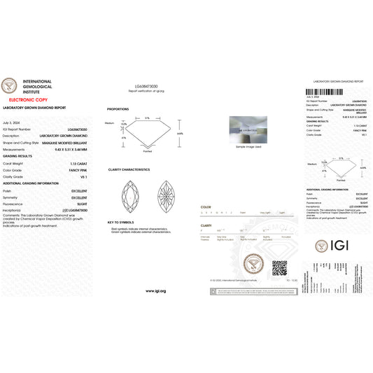 IGI Certified Marquise Diamonds - Fancy Pink - Lab Grown Diamond 1.13ct